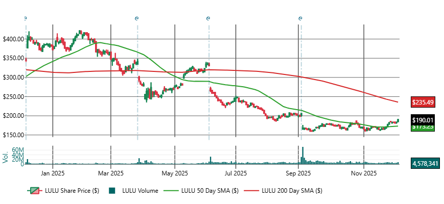 • LULU is trading at ~19–21x forward earnings, far below its 5-year average ~35x.
